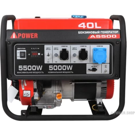 iPower A5500 ist mit einem kompakten, gemufften OHV-Viertaktmotor mit 389 cm³ Hubraum ausgestattet. Auf dem Bedienfeld befinden sich zwei Standardsteckdosen 230 V/16 A, eine Steckdose 230 V/32 A und ein USB-Anschluss, über den Sie das Smartphone, den Tablet-PC und andere Gadgets aufladen können. Die digitale Echtzeitanzeige zeigt Informationen über den Betrieb des Generators an.