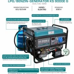 KÖNNER & SÖHNEN 6500 W Gas- U. Benzin-Generator Stromaggregat Stromerzeuger KS 9000EG 1x16A 1?32
