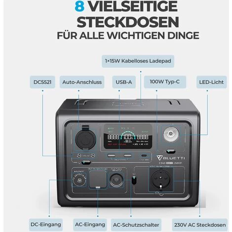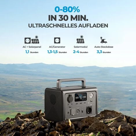 - Klein aber oho: Mit einem 600 W Wechselrichter, einem 268 Wh LiFePO4 Akkupack und 8 Steckdosen sorgt diese Kraftstation dafür, dass Ihre wichtigsten Geräte unterwegs oder bei Stromausfall zu Hause mit Strom versorgt werden.