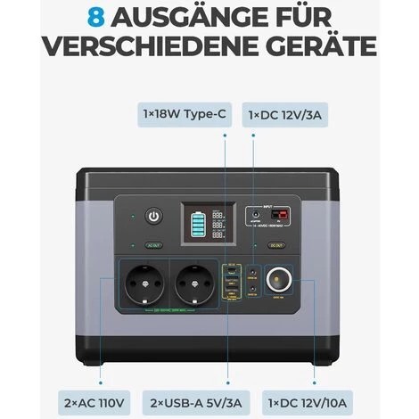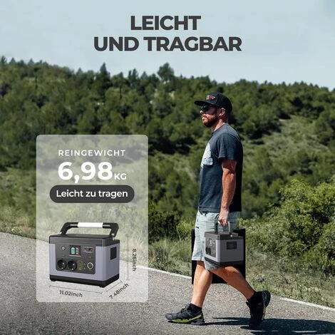 A: Arbeitszeit (Schätzung) = 500Wh.0.85 Betriebsleistung Ihres Geräts. (0.85=Umsrate) Bitte beachten Sie, dass die tatsächliche Arbeitszeit unter verschiedenen Umständen variieren kann.