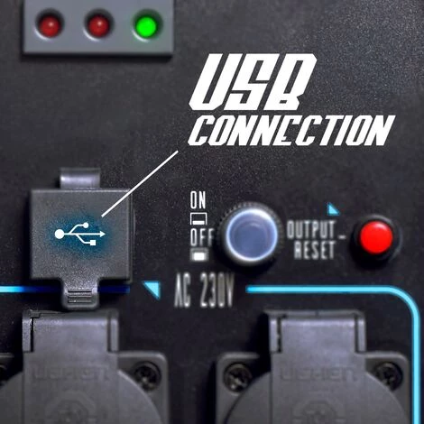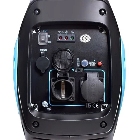 Die Stromversorgung erfolgt über 2 230V AC-Steckdosen und einen 12V/4A DC-Ausgang. Bei Verwendung eines vollen Kraftstofftanks (4,1 l) garantiert Elektron 2200 bis zu 3,2 Betriebsstunden unter Volllast und eine Dauerleistung von 2000 W.
