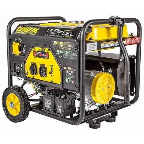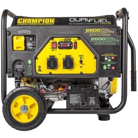 Der wahlweise mit Benzin oder Gas angetriebene und mobil einsetzbare CHAMPION Generator „WWCPG3500E2-DF-EU“ wird von einem 182cm³-Einzylinder-4-Takt Motor betrieben. Der Stromerzeuger erreicht mit Benzin maximal 2.800 Watt (Start) und eine Dauerleistung von 2.600 Watt erreicht – bei Gasbetrieb maximal 2.600 Watt (Start) mit einer Dauerleistung von 2.300 Watt.