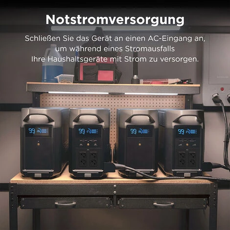 【Anpassbare Leistung】 Erweiterbare Kapazität Dieser Zusatzakku wird mit der DELTA Pro verbunden, um die Gesamtkapazität auf 7.200 Wh zu verdoppeln. Schließen Sie zwei davon an die DELTA Pro an, um erstaunliche 10,8 kWh zur netzunabhängigen Verwendung zu erhalten.