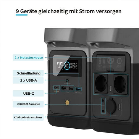【X-Stream-Aufladung + Solar】 Schnelllade-Stromgenerator, erreicht 80 % in weniger als 1 Stunde. Darüber hinaus kann er als Solargenerator für saubere Solarlenergie und eine Leistung von bis zu 300 W mit MPPT (Maximal-Leistungspunkt-Suche) eingesetzt werden.