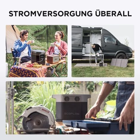 【Strom für nahezu alle Anwendungen】 Mit 1800 W Ausgangsleistung und 11 Ausgängen zur Auswahl kann Delta als Outdoor-Generator Energie für 90 % der Haushaltsgeräte zur Verfügung stellen.