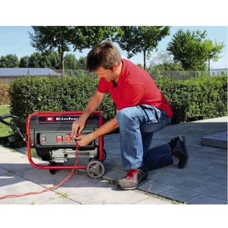 Der Einhell Stromerzeuger (Benzin) TC-PG 35/E5 erzeugt 2.600 Watt Dauerleistung und eine maximale Leistung von 3.100 Watt durch einen kraftvollen, robusten und sauberen 4-Takt-Antriebsmotor. Durch die Einhaltung der Emission 5-Regularien ist sichergestellt, dass der luftgekühlte Viertakt-Benzinmotor emissionsarm arbeitet. Zum Umsetzen des Stroms auf Endgeräte stehen zwei 230V-Steckdosen inklusive Voltmeter, das die Stromspannung zeigt, zur Verfügung. Die AVR-Funktion (automatische Spannungsregelung) gewährt eine stabile Ausgangsleistung. Zwei große Räder und ein Klappgriff bieten einen einfachen Transport. Der große 15 Liter-Tank ist mit einer praktischen Füllstandanzeige für den anhaltenden Dauerbetrieb ausgerüstet. Ein Überlastschalter und eine Ölmangelsicherung sorgen für den sicheren und langlebigen Betrieb. Gestartet wird der Stromerzeuger ganz einfach mittels eines Seilzuges. Kraftvoller, robuster und sauberer 4-Takt-Antriebsmotor