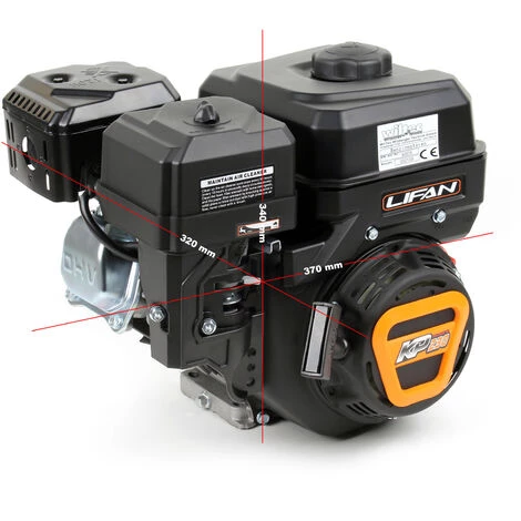 Der OHV 4-Takt Einzylindermotor ist mit einem Seilzugstarter, einem Vergaser, einem Auspuff, einem Tank und einem Luftfilter ausgestattet.